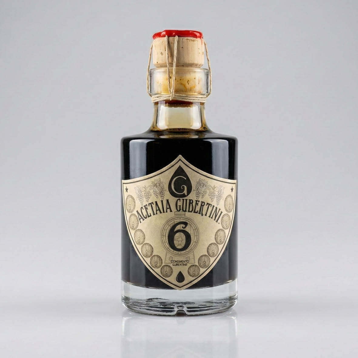 ESCLUSIVO CONDIMENTO BALSAMICO DI MOSTO D’UVA COTTO, ACETIFICATO E INVECCHIATO IN PREGIATE BOTTI DI LEGNO.